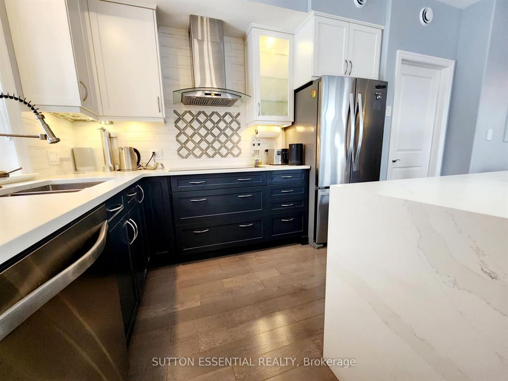 The right time is now to start living conveniently! Enjoy peace of mind when you opt to live in a condo – go on that vacation knowing your home is secure. 1109 Millwood is in a great location, close to many stores, restaurants, recreation and St. Lawrence College. This building boasts underground parking included in the purchase of the condo unit, where you can utilize the elevator to the main floor to reach your unit. There is plenty of visitor parking outdoors, a designated balcony for each unit with plenty of space for your patio furniture. Unit 102 has two bedrooms, a main 4PC bathroom as well as an ensuite with the “extras” – tiled shower with rainfall shower head and corner seat, heated towel bar and lighted mirror. The kitchen is open to the living and dining areas making the unit feel even more spacious, and the upgrades are beautiful. The Heritage Kitchen cabinetry installed in 2019 is just the start – from lighting, to the 6ft island with waterfall counters, induction stove top, wall oven and microwave, dishwasher, tiled backsplash, you will love it all. If you have hesitated with your decision on condo living, this is your sign to hesitate no more – make sure to view it in person!