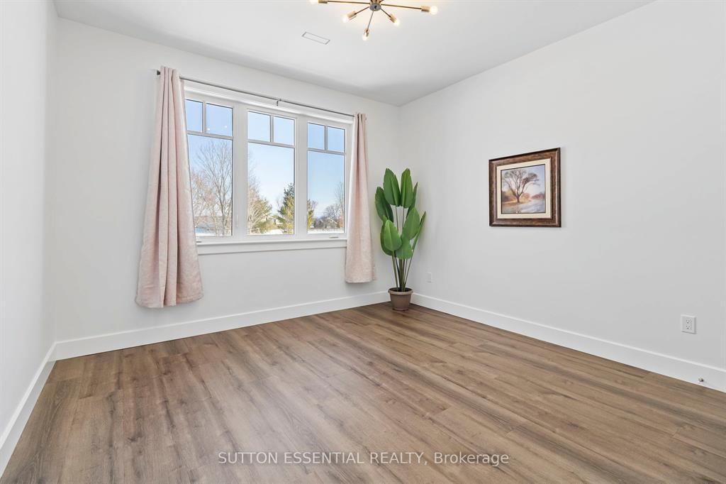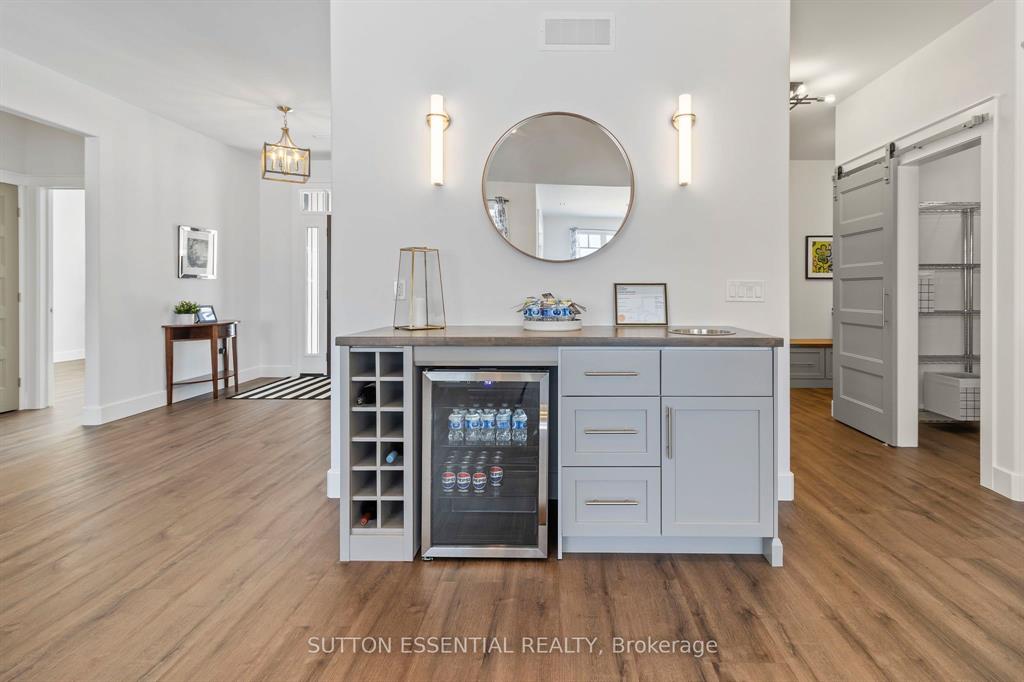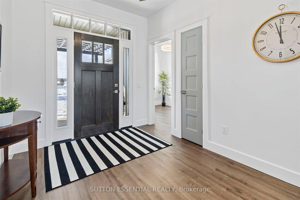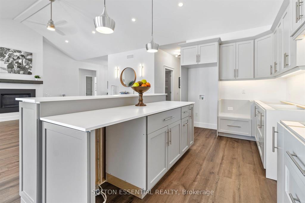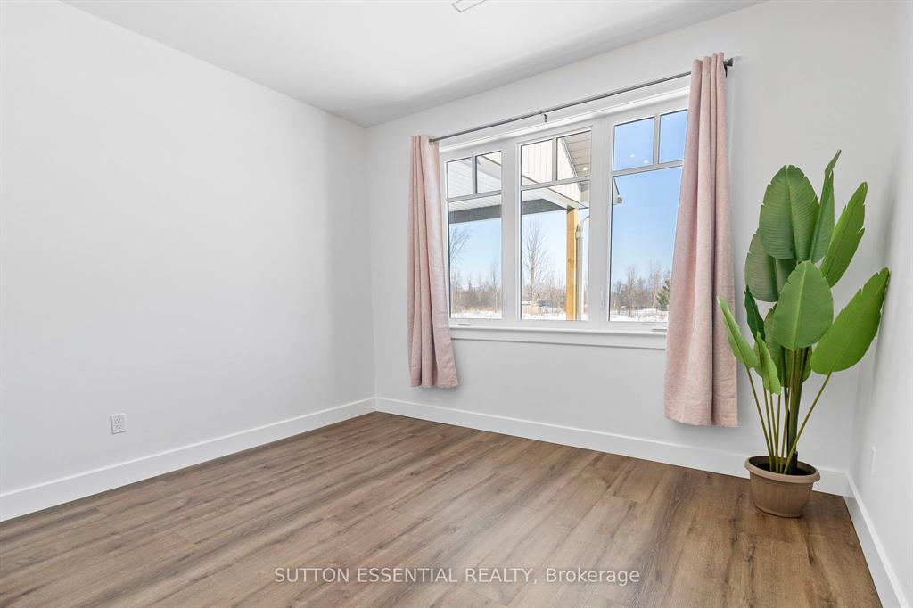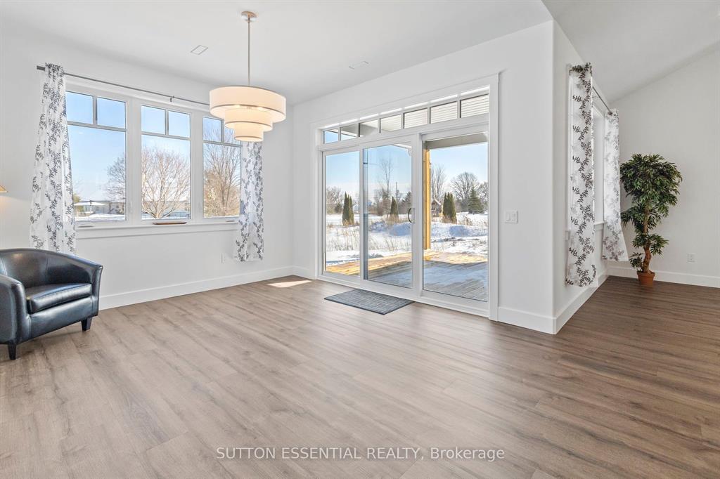 | Nearing Completion! Brand-new, custom-built bungalow by Nostalgic Homes, offering refined country living with over $60,000 in value-added standard features. This thoughtfully designed 3-bedroom + office, single-storey home provides over 1,920 sf of low-maintenance, high-comfort living on a peaceful one-acre cul-de-sac lot, backed by a full Tarion Warranty. This basement-free, low-threshold home is built on a fully insulated, heated slab with radiant in-floor heating beneath luxury vinyl flooring and central air conditioning for year-round comfort. Enjoy worry-free living with no sump pumps, sewage pumps, or damp basements. The exterior showcases timeless curb appeal with dark grey board-and-batten siding, black vinyl windows, a fibreglass Craftsman door, stained custom entry trellis, and two covered porches. Inside, soaring vaulted ceilings, quartz countertops throughout, and an open-concept layout elevate the living space. The kitchen is designed for both function and style, featuring a large island and custom cabinetry, ideal for everyday living and entertaining. The vaulted great room offers a cozy fireplace and a custom wet bar, perfect for hosting happy hour or relaxing with guests. The primary suite is a private rear of the home retreat, highlighted by a tray ceiling and decorative feature wall. The spa-inspired ensuite includes dual floating vanities, LED mirrors, soaker tub, a custom low-threshold tile shower, and a private water closet. Additional features include a covered rear porch and an oversized 2.5-car attached garage that is fully insulated, drywalled and painted, providing excellent storage and convenience. Located just minutes from Brockville and the 1000 Islands, with nearby parkland, athletic fields, and a quaint new general store and café. This exceptional home offers the perfect blend of modern luxury, thoughtful craftsmanship, and serene country living. Dare to compare this exceptional level of quality, design, and value. |