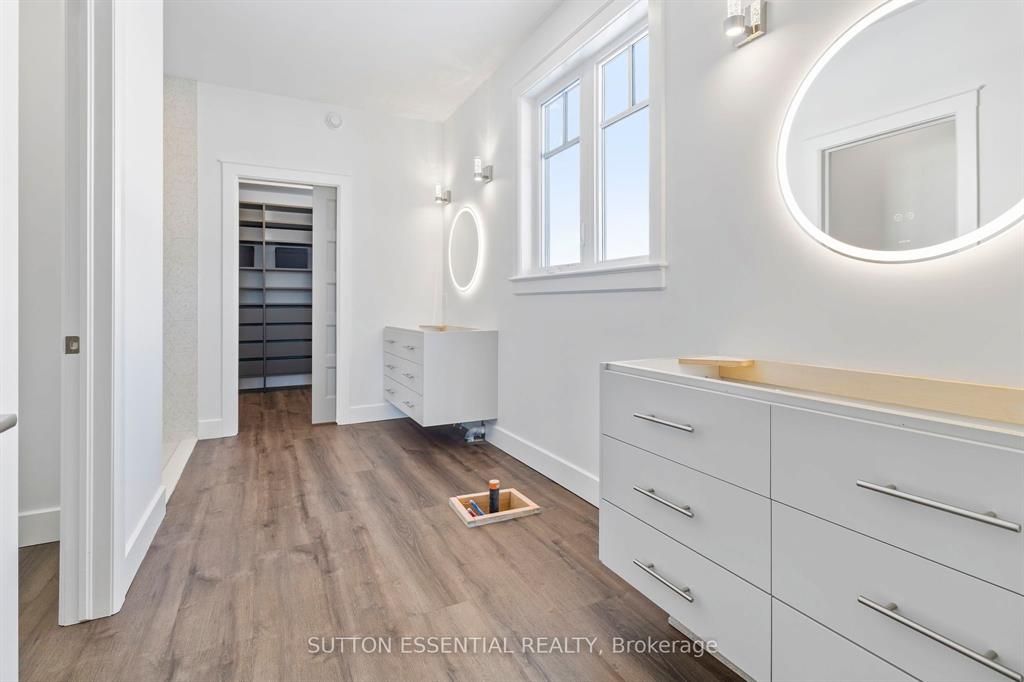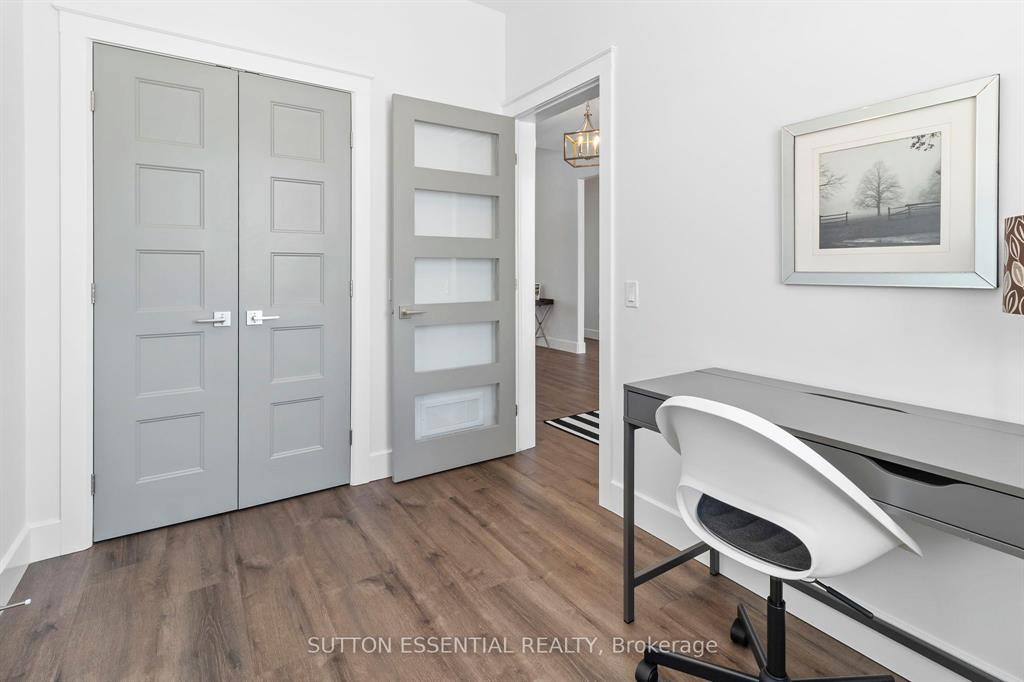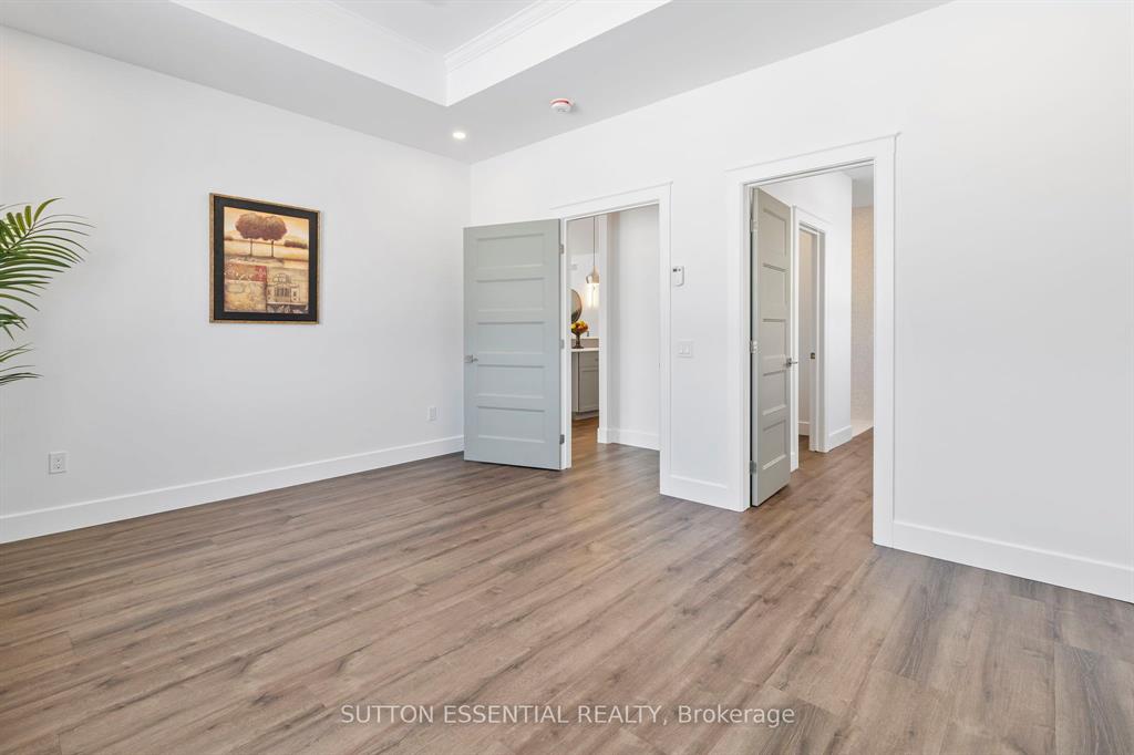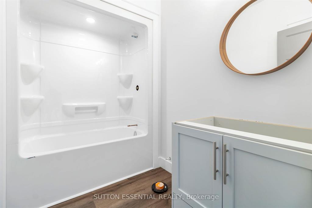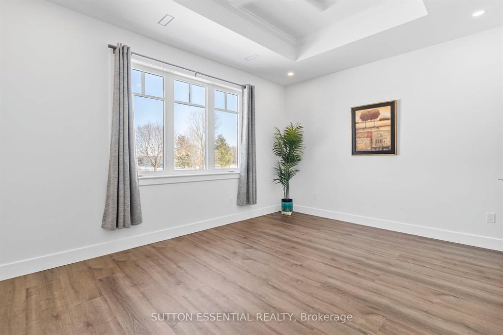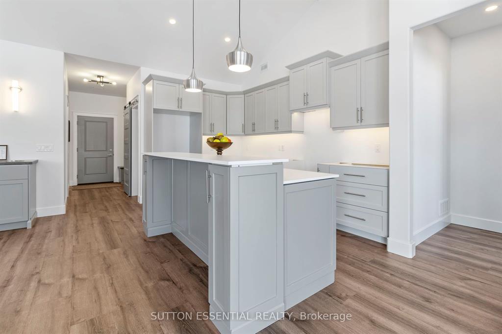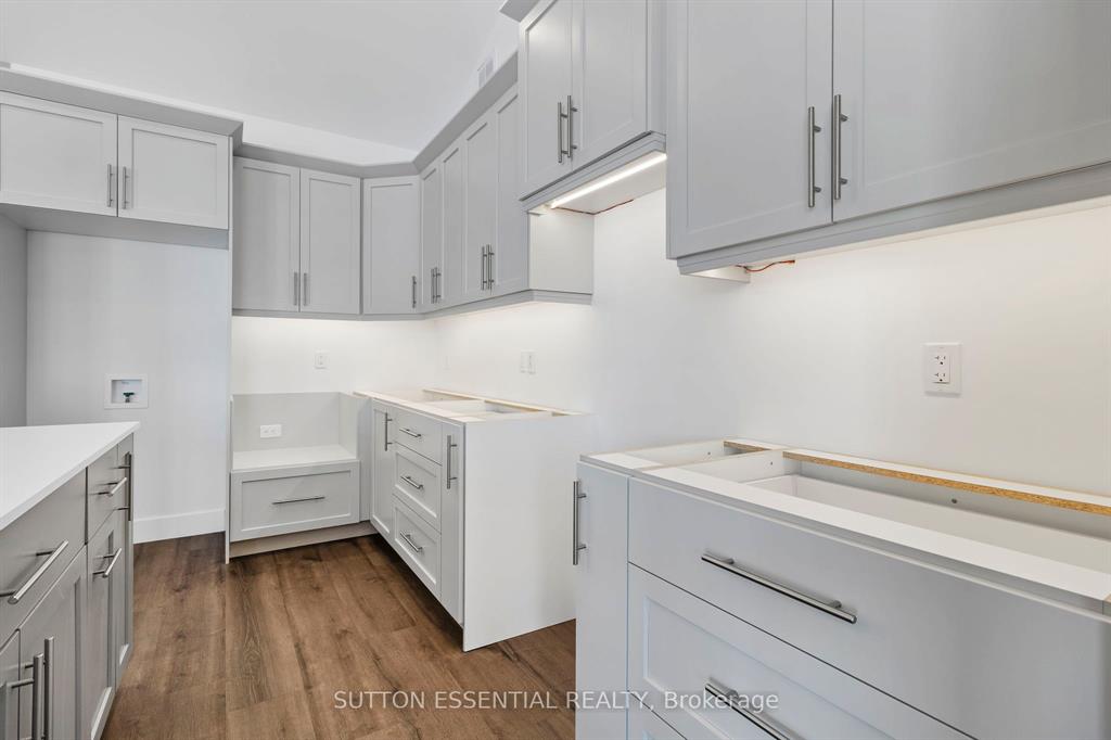 | Nearing Completion! Brand-new, custom-built bungalow by Nostalgic Homes, offering refined country living with over $60,000 in value-added standard features. This thoughtfully designed 3-bedroom + office, single-storey home provides over 1,920 sf of low-maintenance, high-comfort living on a peaceful one-acre cul-de-sac lot, backed by a full Tarion Warranty. This basement-free, low-threshold home is built on a fully insulated, heated slab with radiant in-floor heating beneath luxury vinyl flooring and central air conditioning for year-round comfort. Enjoy worry-free living with no sump pumps, sewage pumps, or damp basements. The exterior showcases timeless curb appeal with dark grey board-and-batten siding, black vinyl windows, a fibreglass Craftsman door, stained custom entry trellis, and two covered porches. Inside, soaring vaulted ceilings, quartz countertops throughout, and an open-concept layout elevate the living space. The kitchen is designed for both function and style, featuring a large island and custom cabinetry, ideal for everyday living and entertaining. The vaulted great room offers a cozy fireplace and a custom wet bar, perfect for hosting happy hour or relaxing with guests. The primary suite is a private rear of the home retreat, highlighted by a tray ceiling and decorative feature wall. The spa-inspired ensuite includes dual floating vanities, LED mirrors, soaker tub, a custom low-threshold tile shower, and a private water closet. Additional features include a covered rear porch and an oversized 2.5-car attached garage that is fully insulated, drywalled and painted, providing excellent storage and convenience. Located just minutes from Brockville and the 1000 Islands, with nearby parkland, athletic fields, and a quaint new general store and café. This exceptional home offers the perfect blend of modern luxury, thoughtful craftsmanship, and serene country living. Dare to compare this exceptional level of quality, design, and value. |