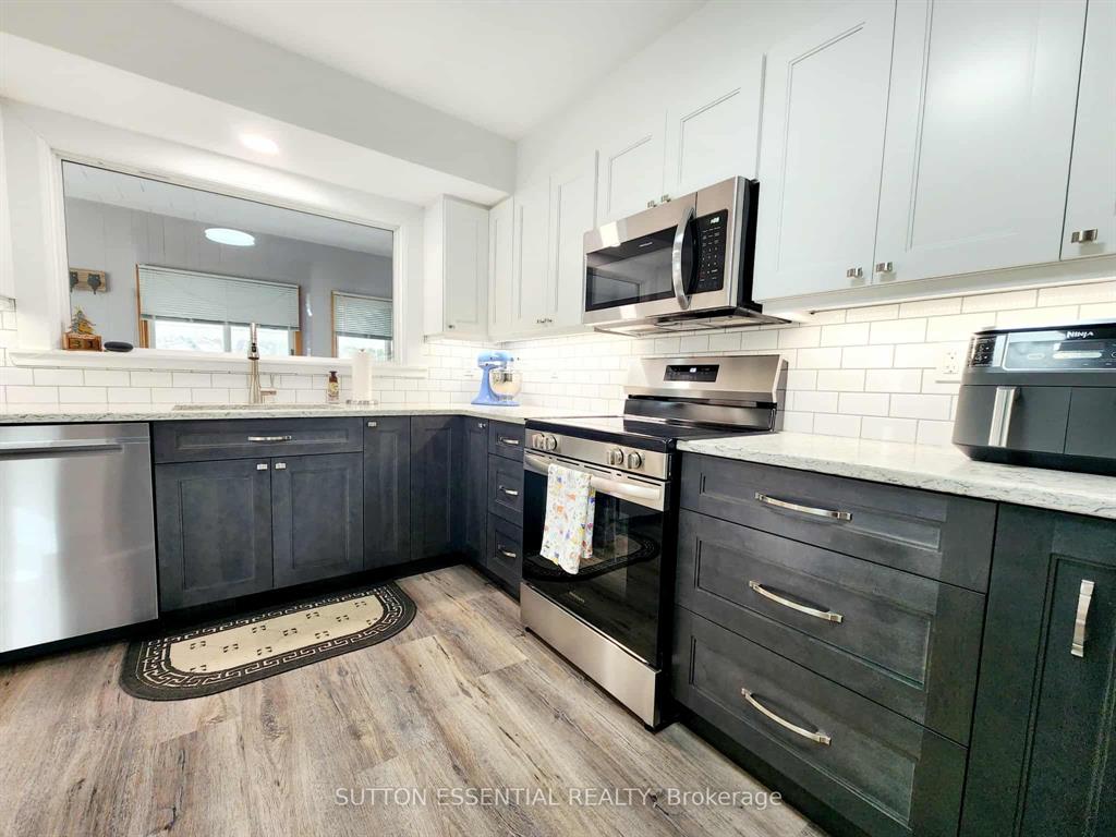 | Three important words – “bungalow, detached garage”. Add to that a few more important words – in town, LOTS of parking space, fenced yard, main floor laundry, two full bathrooms! Here it is, the home you have been waiting to start in, downsize in, live in! This home has a great main floor layout with no wasted space, closets every where you turn, and plenty of natural light. Brand new kitchen (2025) with all the bells and whistles – quartz counters with a hint of sparkle, pantry with pull out shelves, oversized sink, under cabinet lighting, high-quality dovetail drawers, pull out spice cabinet – kitchens are important after all! The lower level has a full bathroom, “man cave” with bar and electric fireplace, and a large space currently utilized for gym equipment and guest space. Added bonuses of natural gas furnace, central air, electrical breaker panels, hardwood floors, corner lot – was it already mentioned there is a LOT of parking space? Plan your house warming party here! |