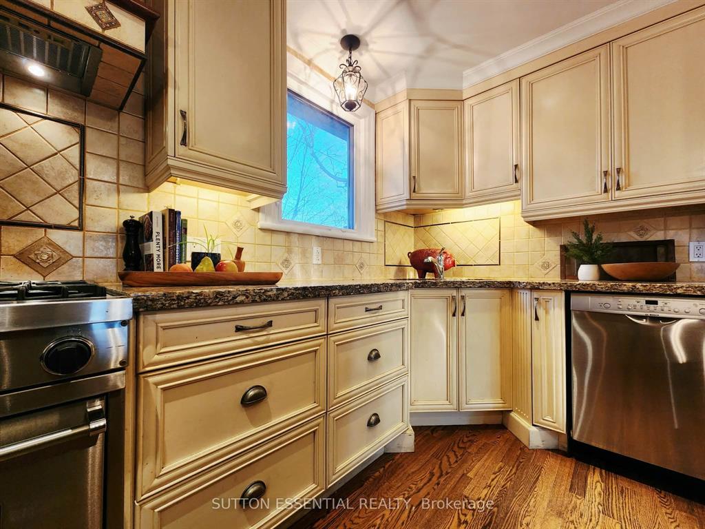 Nestled in an established neighbourhood, your bungalow awaits! A warm and comfortable feeling will wash over you from the moment you walk up to the front porch. Picture your morning coffee there, or more privately on your back deck, this area is full of birds and squirrels to enjoy it with. This 3+2 bedroom home has been professionally painted throughout, adding to the list of things that make it move in ready. Tasteful hardwood floors that flow through the upstairs and an ideal layout lends itself well to the decorator’s eye – statement fireplace illuminating the living area, a chef’s kitchen with granite countertops, island and bistro table, perfectly placed windows to enhance the day’s sunlight, main bedroom at the back of the house overlooking the “mostly” fenced yard. The lower level is complete with a second bathroom, full size rec room, 2 bedrooms/offices, a storage/work bench room, with plenty more space in the laundry and utility room – you will not run out of storage space in this house! The bonus to this house – it backs onto Fulford Park! View it with your own eyes, the wait for your home might be over!
