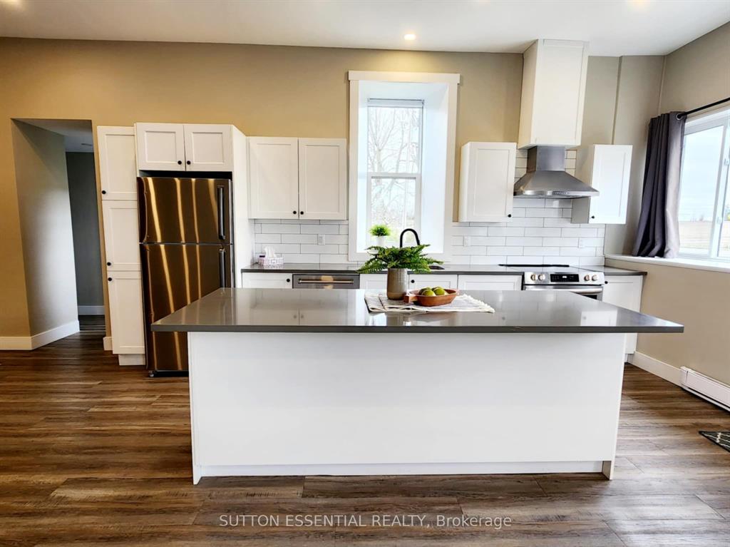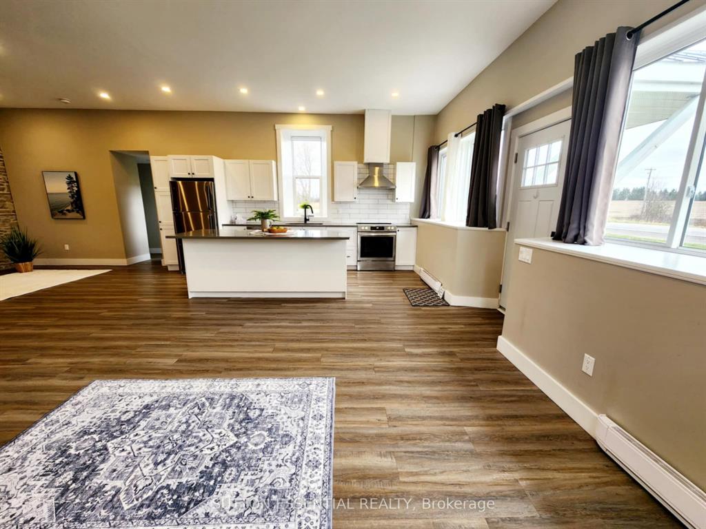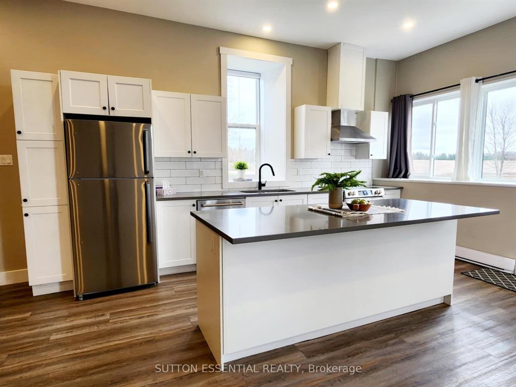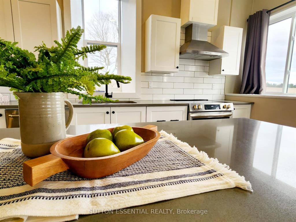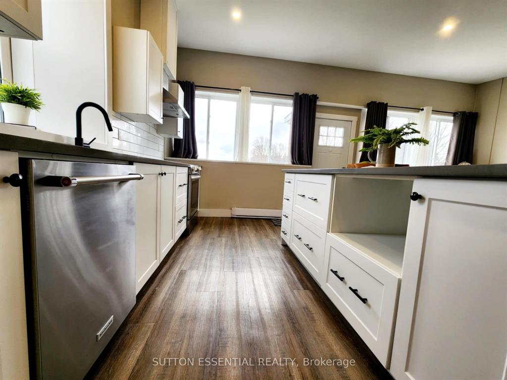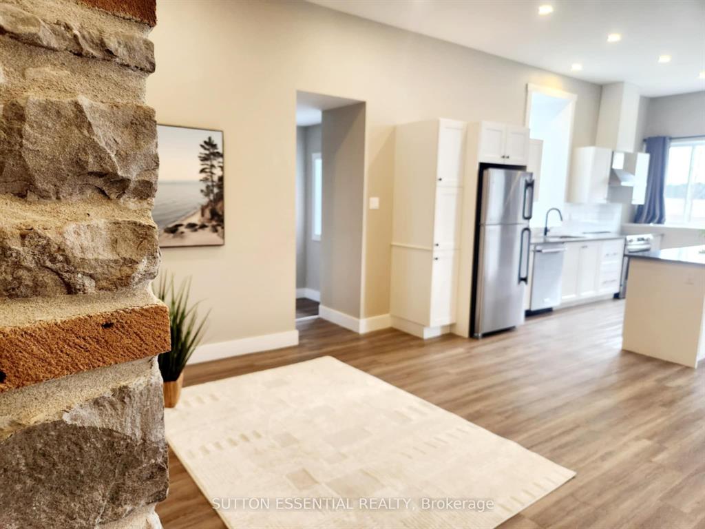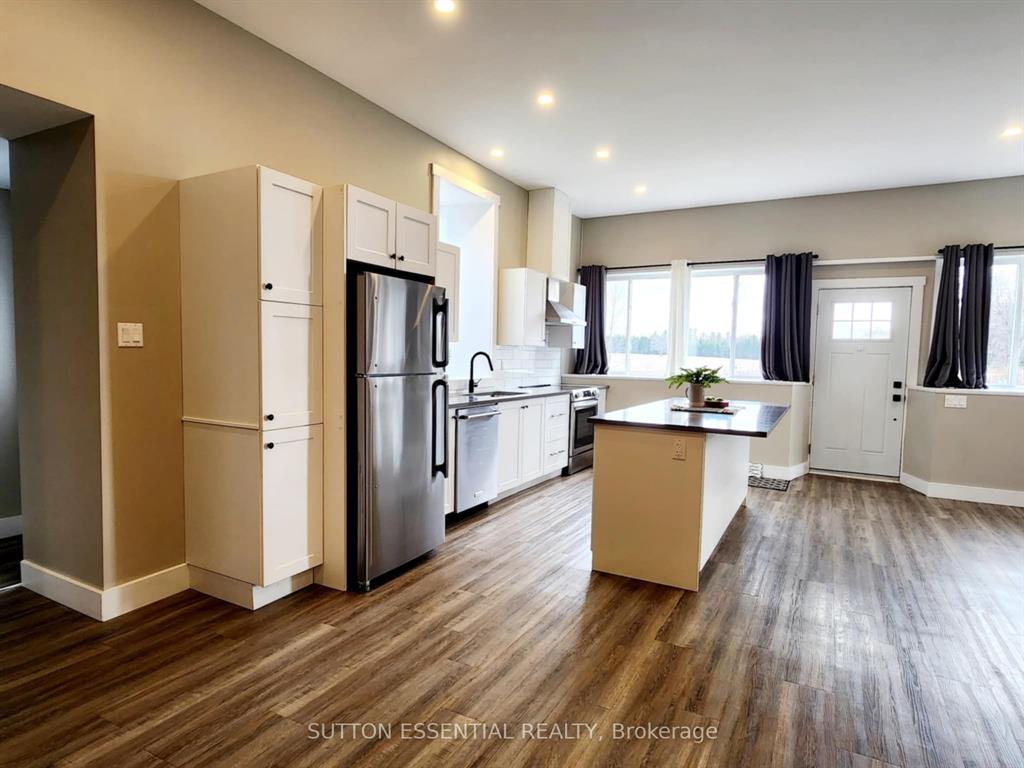 | Fondly remembered in the area as “the old school house” – this home has been tastefully renovated to highlight it’s natural charm. Open concept at it’s best, this three bedroom home easily lends itself to entertaining – the exposed stone accent wall is sure to be the talk of the dinner table, it is absolutely gorgeous. Enjoy cooking in the kitchen and being able to host your guests at the same time, the island divides the room nicely with a quartz cover. Two of the bedrooms are side by side, very large with generous sized closets and waterproof carpeting, the third bedroom has a more private section of the home – perfect space to utilize as an office as well. The bathroom has been modernized with a double sink, pristine tiling, deep tub, and stackable washer and dryer. The mudroom is much larger than you would see at most homes this size, consider using this area as a hobby space instead! The important (not as pretty) areas have not been overlooked when updating – electrical, heating, aluminum soffits (2023), metal roof re-screwed (2023), insulation, pot lights, windows – you will not be disappointed in viewing this one and it’s craftsmanship throughout. |
